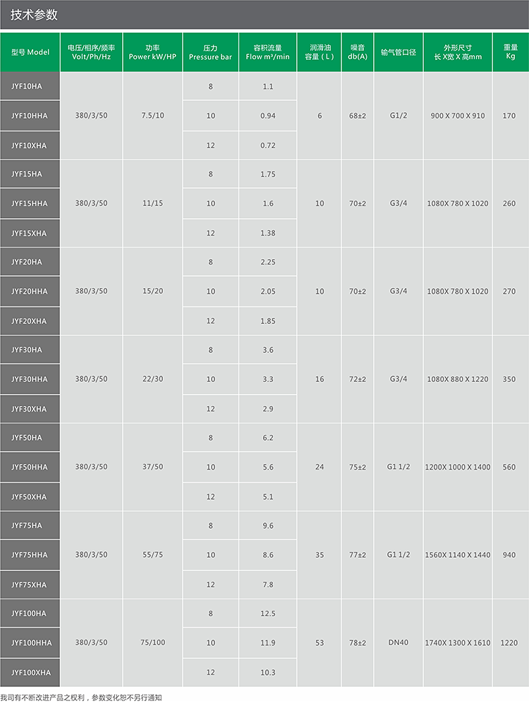 JUCAI螺桿空壓機主機,大轉子低轉速設計,采用先進的螺旋齒型技術,瑞典原裝進口SKF圓錐滾柱軸承,噪音低,能耗低。